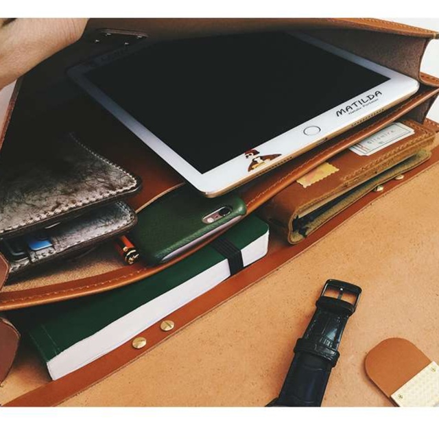 タブレットや書類、財布などをすっきりと整理できる機能的な仕切りと十分な収納スペース。
