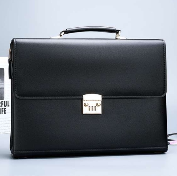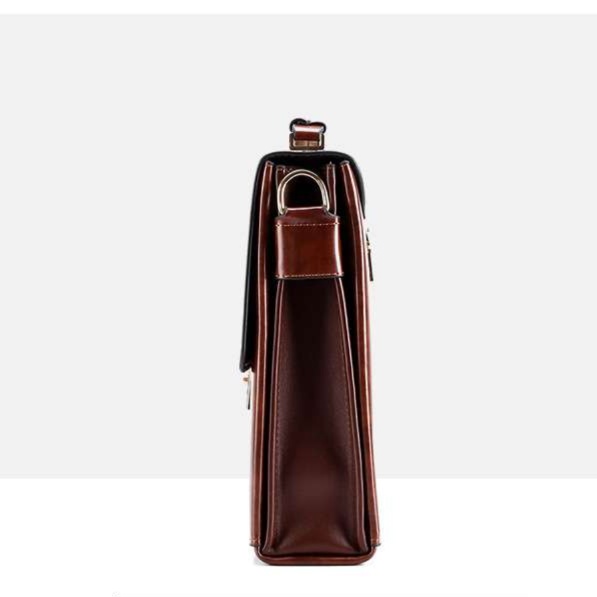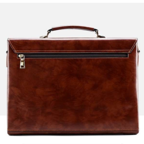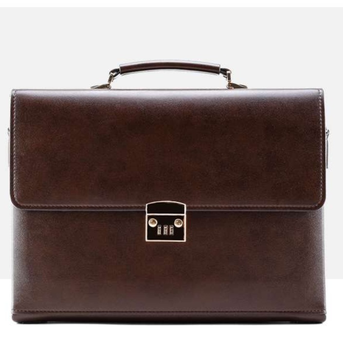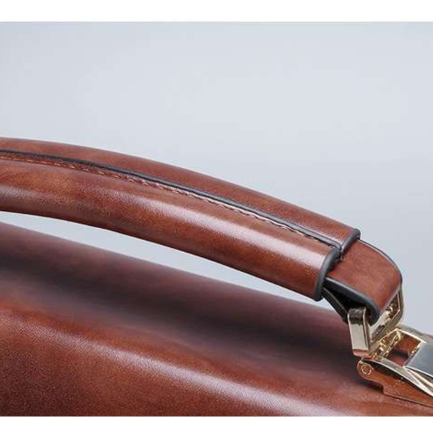 上質なレザーを使用した本革製ブリーフケースは、ビジネスシーンにぴったりの洗練されたアイテムです。コンパクトなデザインながら、必要な書類や小物をしっかり収納できます。数字ダイヤル式の金具により、安全性も抜群。さらに、斜めがけ可能なショルダーストラップが付いており、使い勝手も考慮されています。丁寧な縫製が施されたこのブリーフケースは、長年の愛用に耐える逸品です。