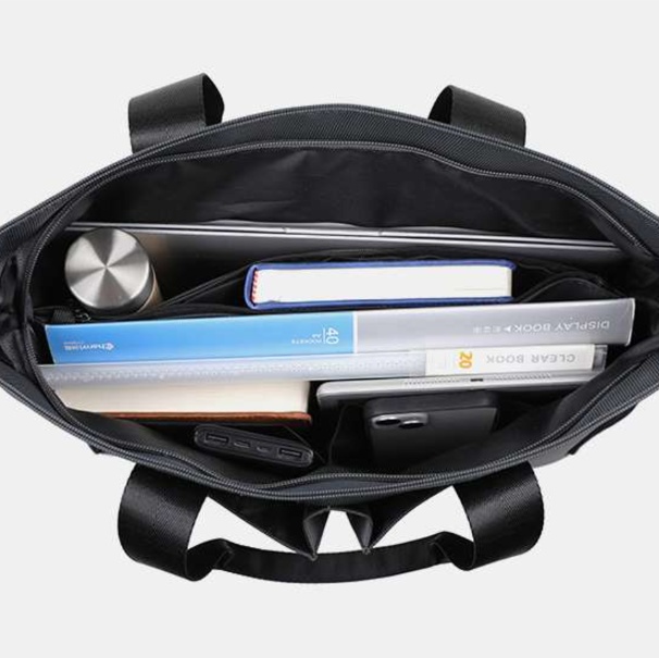 大きなメイン収納に加え、前面の大きなポケットで書類やタブレットを効率的に整理できます。