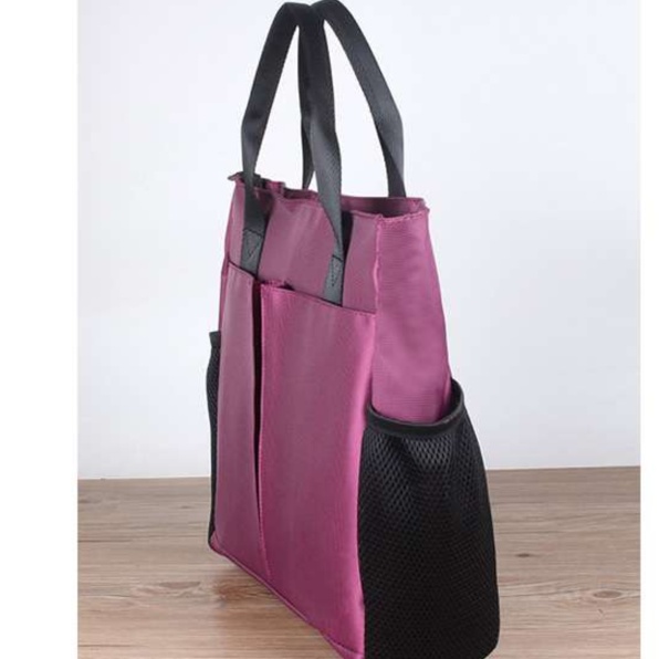 メイン収納の両サイドにメッシュポケットがあり、小物の整理がしやすく機能的です。