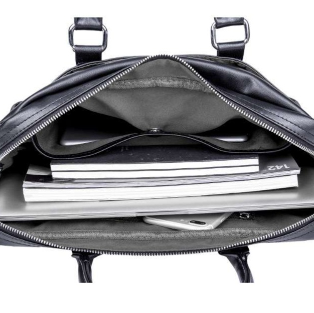 メイン収納に加え、使いやすい仕切りポケットを備え、書類やデバイスの整理がしやすい構造です。