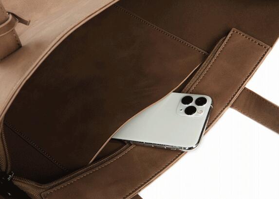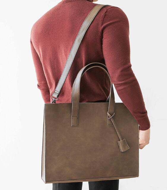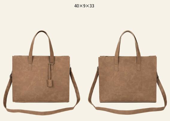 高品質な合成皮革を使用し、手持ちとショルダーの2ウェイ仕様で通勤や出張に便利。